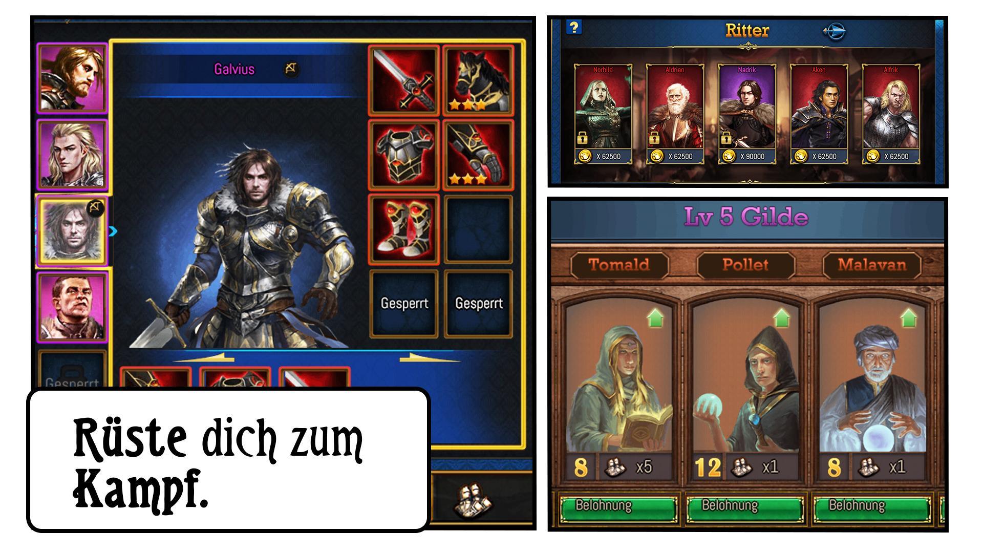 Kings Crest kann kostenlos heruntergeladen und gespielt werden, einige Gegenstände können jedoch innerhalb des Spiels gekauft werden. Ersteiger hierfür zunächst Diamanten und nutze diese dann zum Kauf deiner Ausrüstung.